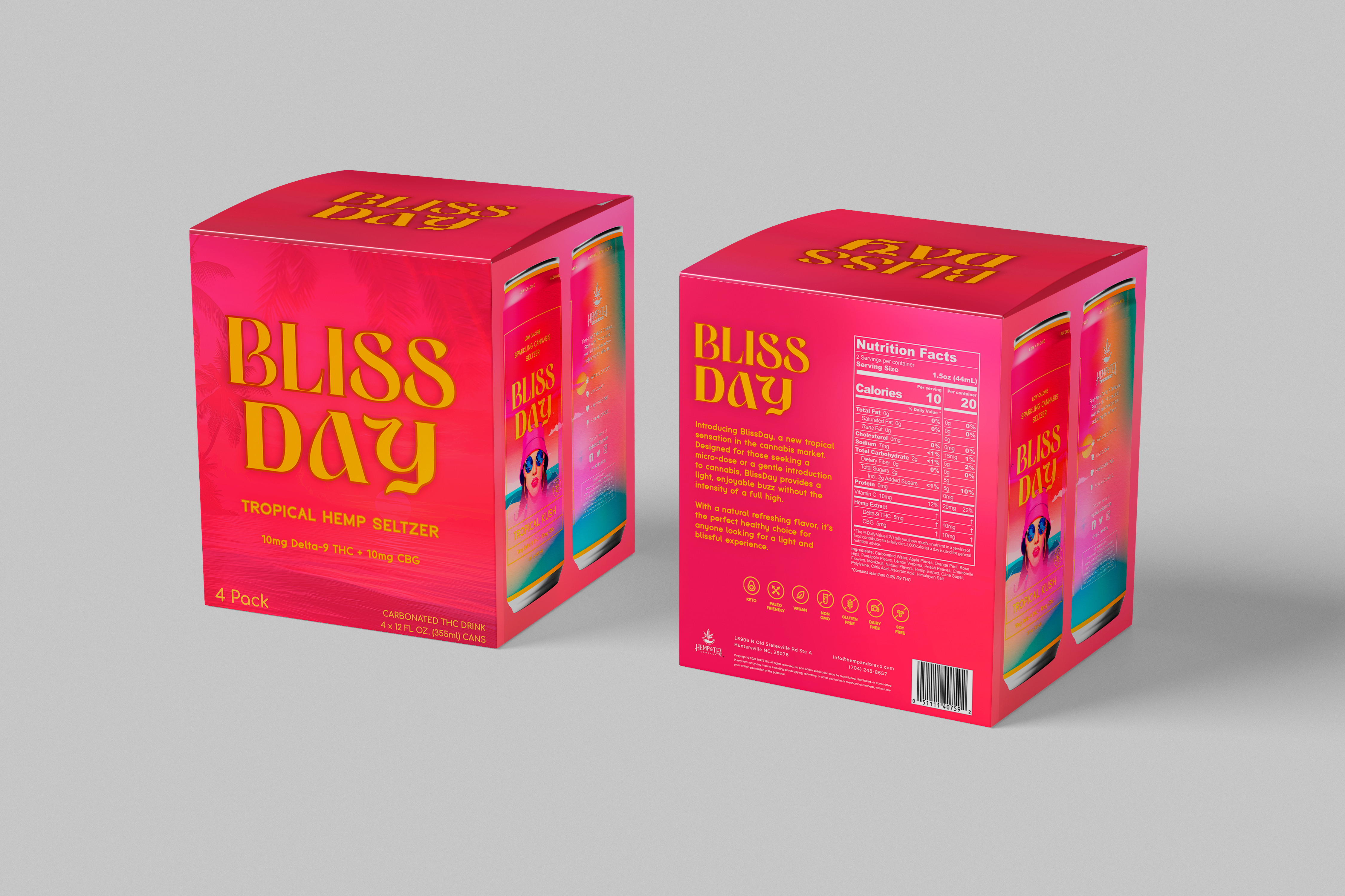 Looking for a refreshing drink that’ll keep you loose but functional throughout the day? Then Hemp and Tea Co’s new Bliss Day Sparkling THC Seltzer is just the drink for you! Each can contains 10mg Delta 9 THC and 10mg CBG for a perfect relaxing drink. With a delightfully tropical taste, our Bliss Day THC seltzer will put you in a state of Bliss that’s great for a weekend afternoon, or maybe just a chill day in the house! Whatever your desire, if you need a smooth high that’s easy to consume, our Bliss Day THC Seltzer is just the can you need.